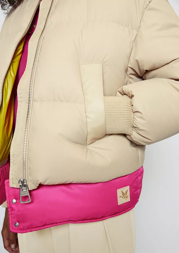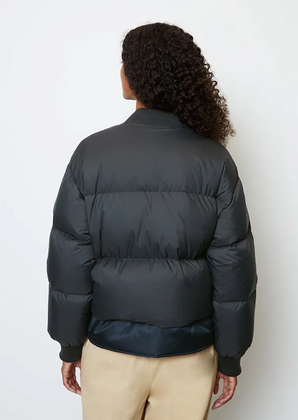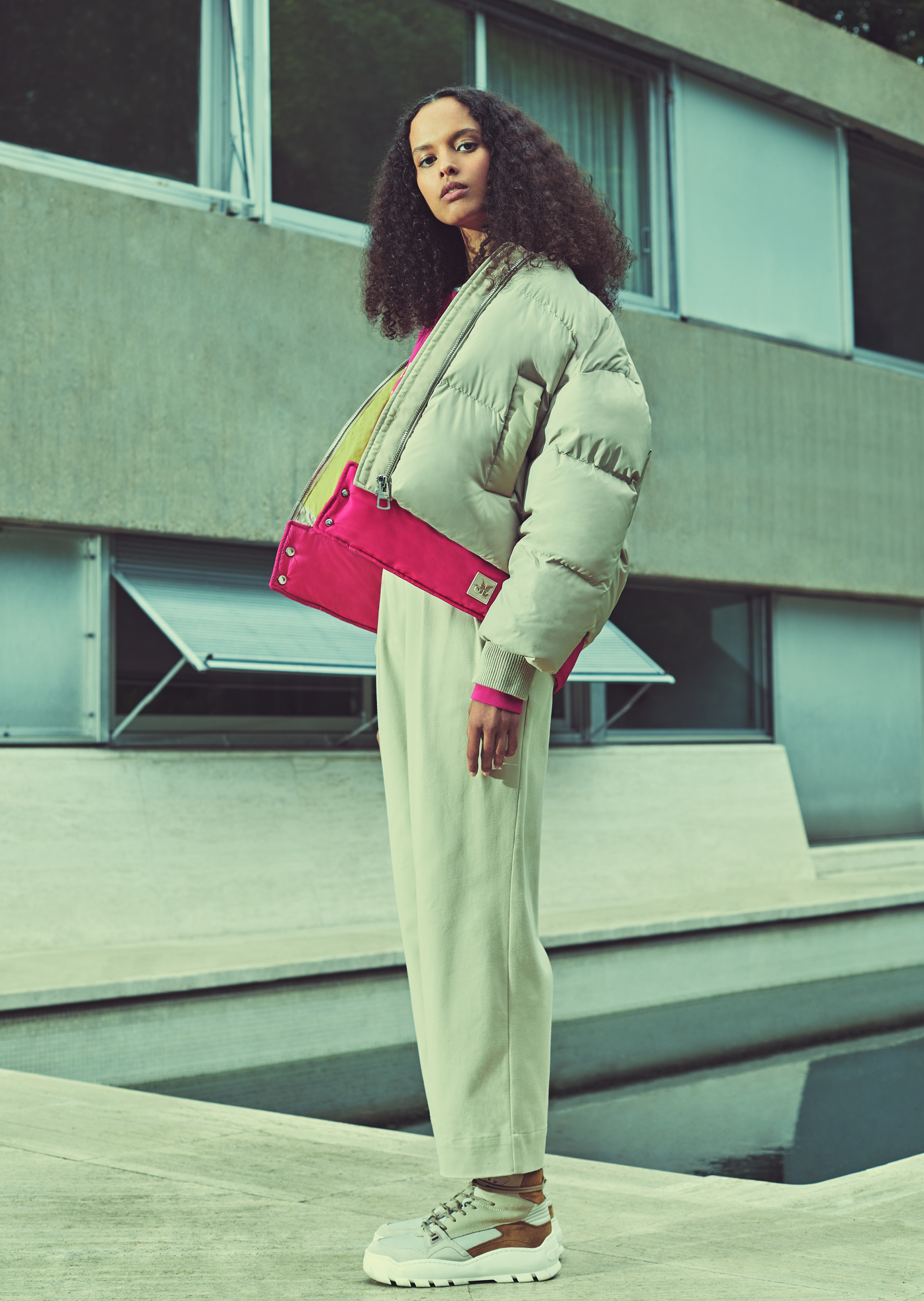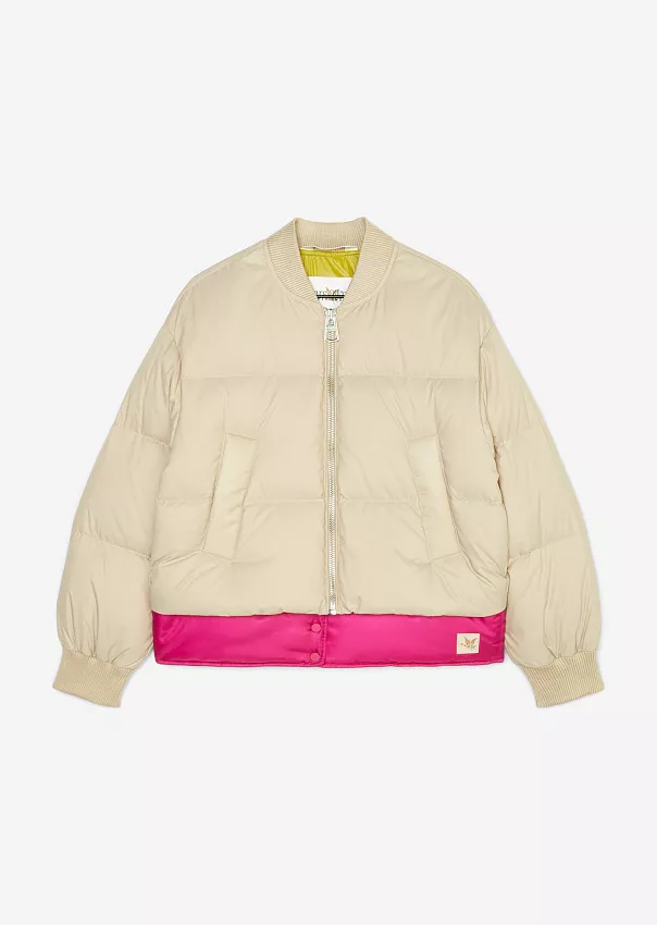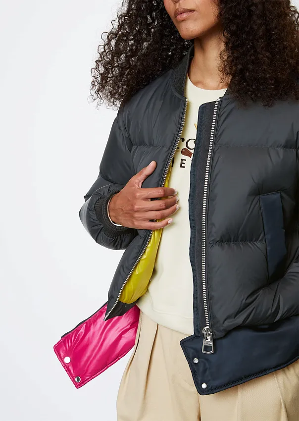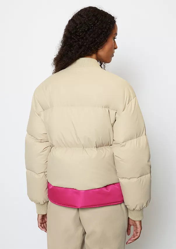 Одно из ключевых изделий коллаборации – бомбер. Выполненный из переработанного нейлона с водоотталкивающей поверхностью, он является абсолютным маст-хэвом сезона.