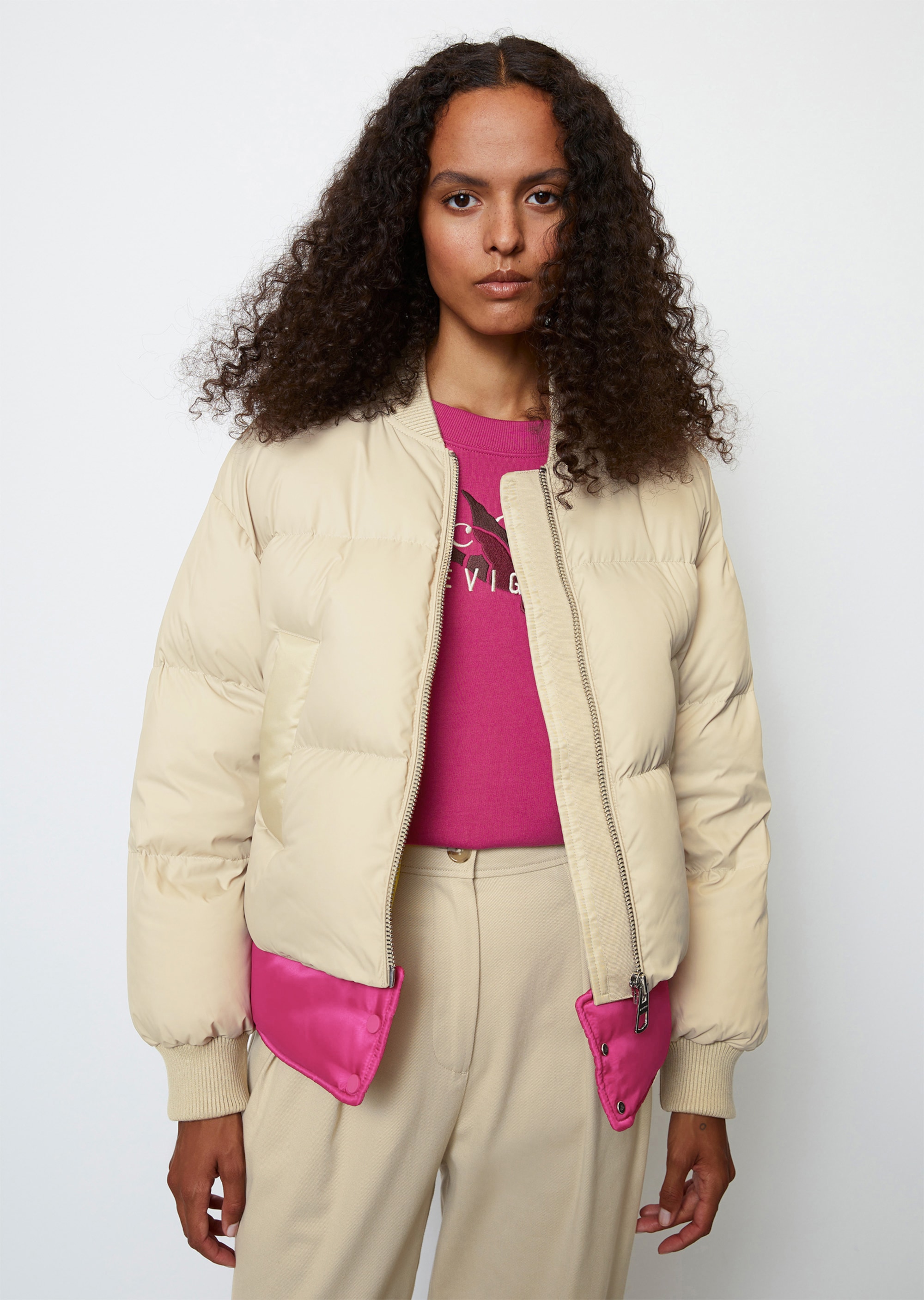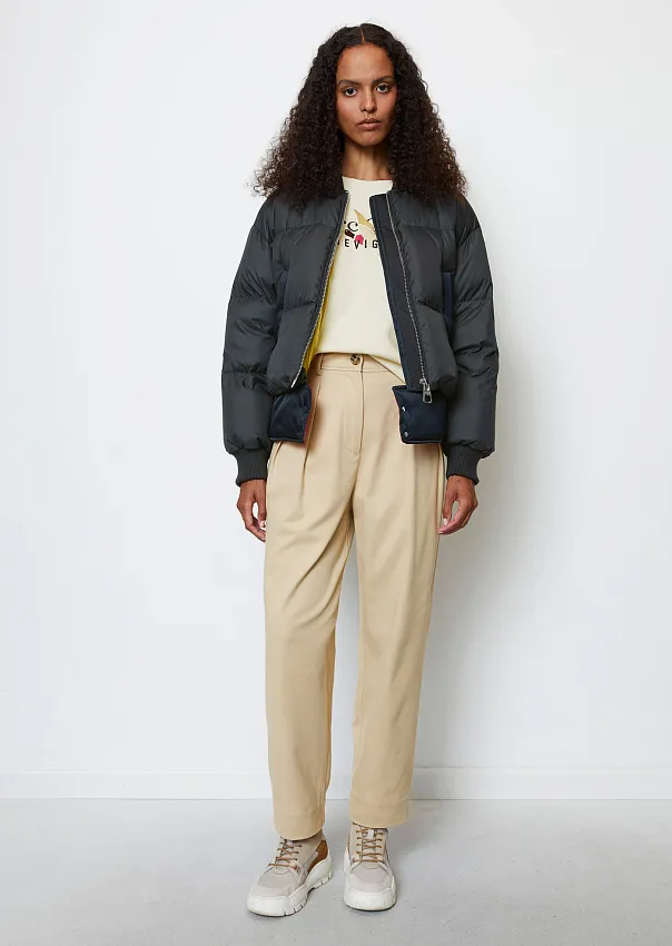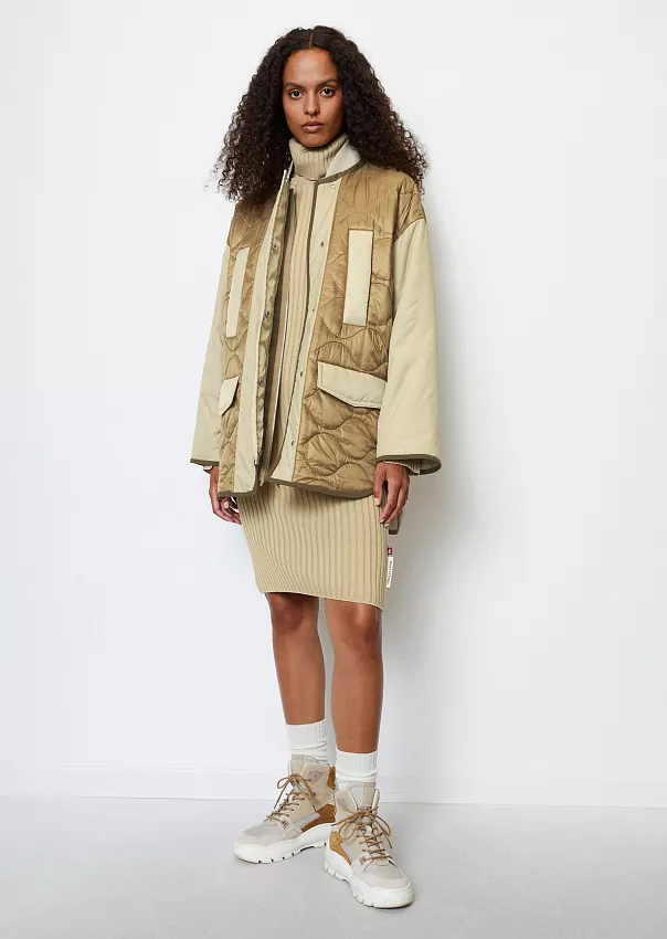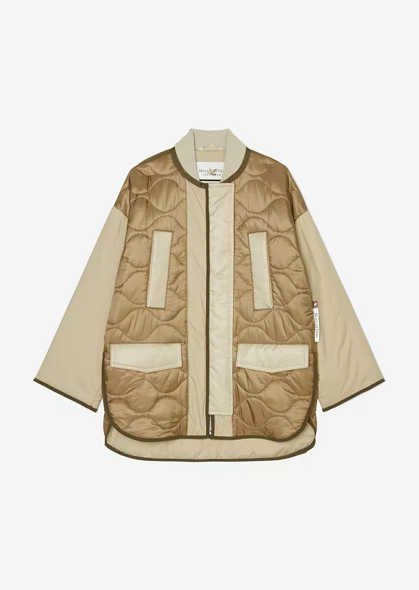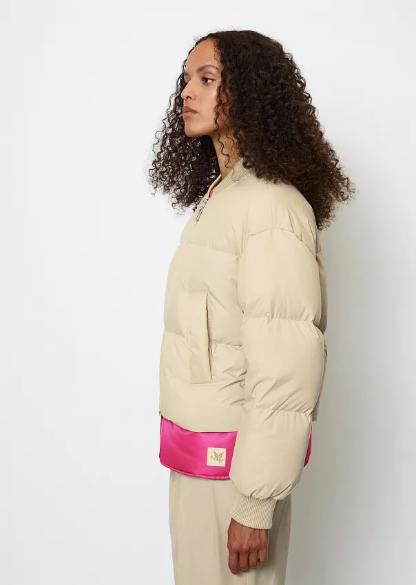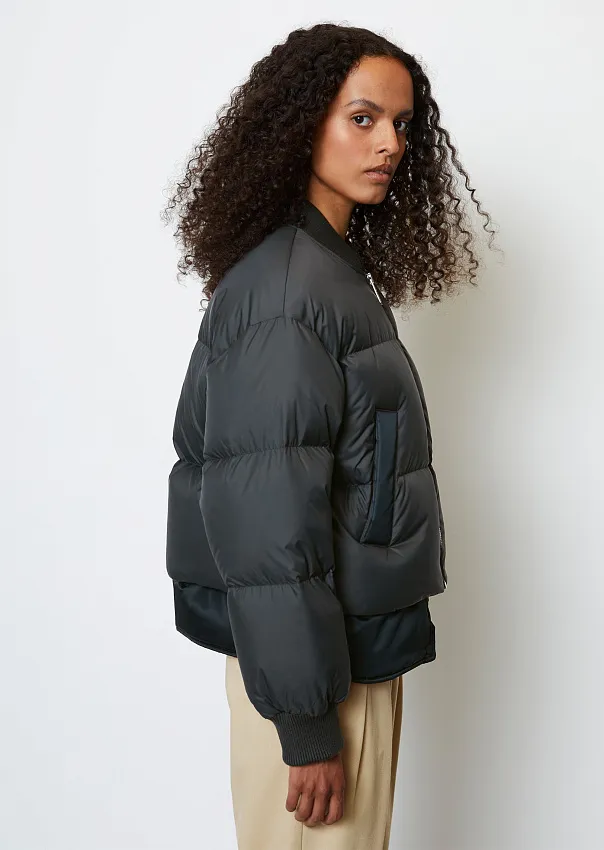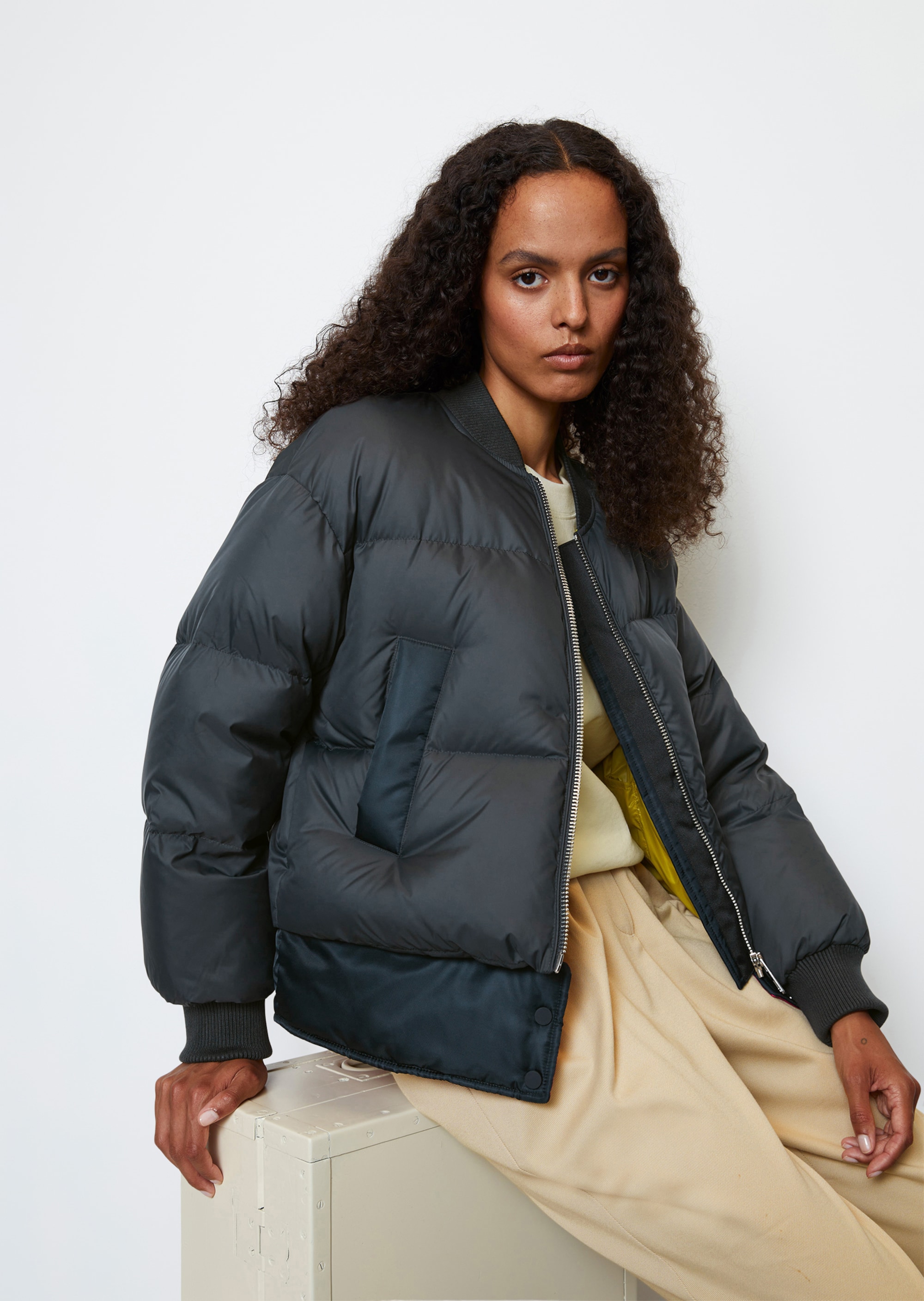 Одно из ключевых изделий коллаборации – бомбер. Выполненный из переработанного нейлона с водоотталкивающей поверхностью, он является абсолютным маст-хэвом сезона.