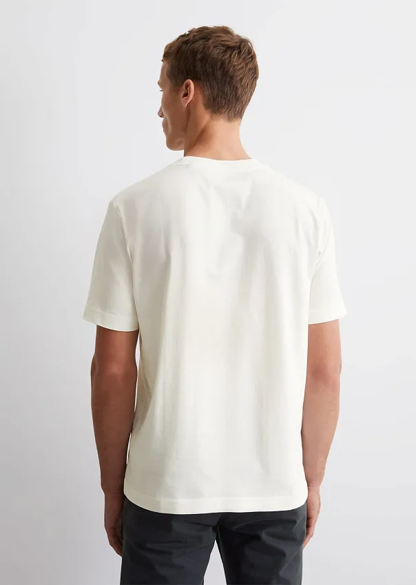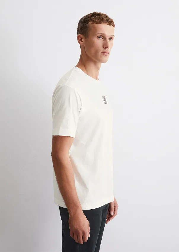 Базовая футболка из мягкого джерси сочетает в себе лаконичный дизайн и высококачественный материал. Модель прямого кроя выполнена из сертифицированного органического хлопка. Детали: круглый вырез горловины, короткие рукава и прямой подол. Футболка дополнена квадратным принтом на груди. Универсальный предмет гардероба, предполагающий множество вариантов стилизации.