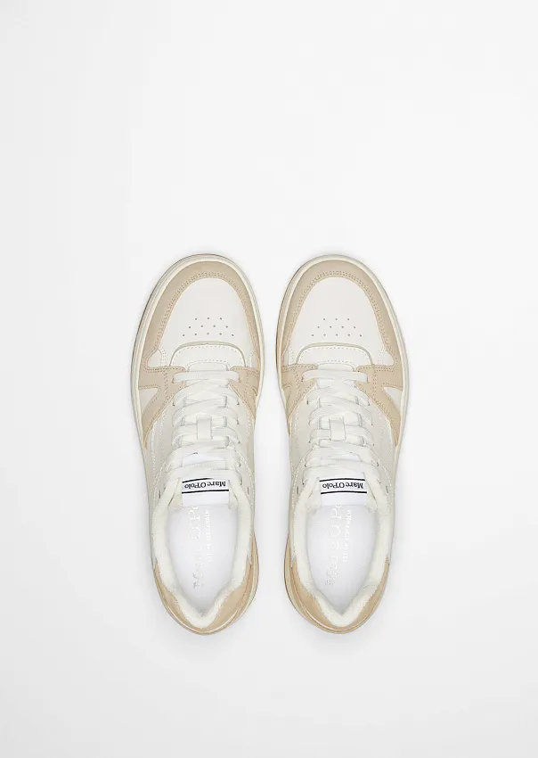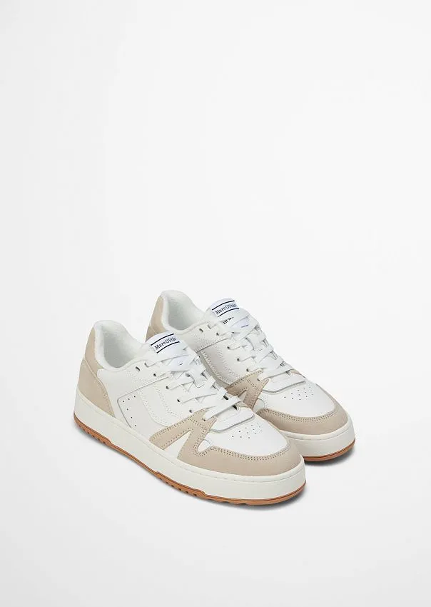 Идеальный вариант для спортивных повседневных аутфитов: универсальные кроссовки из гладкой воловьей кожи со вставками из мягкой замши. Выполнены в ретро стиле: однотонные с контрастными цветовыми акцентами. Дополнены плоскими шнурками. Сетчатая подкладка из переработанного ПЭТ и съемная стелька из дышащей микрофибры и пены с эффектом памяти обеспечивают максимальный комфорт при ходьбе. Пятка и язычок дополнены мягкой подкладкой. Прочная, устойчивая к скольжению резиновая подошва разработана эксклюзивно для Marc O’Polo. Кроссовки идеально сочетаются с образами в стиле кэжуал.