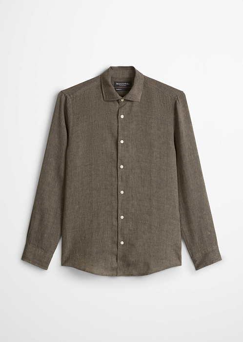 Легкая рубашка с длинным рукавом выполнена из ткани шамбре, тонкой высококачественной льняной пряжи, благодаря чему она комфортна в носке и обладает естественной воздухопроницаемостью. Окрашивание с использованием натуральных красителей придало материалу благородный слегка выстиранный эффект с живой глубиной цвета. Современный воротник «акула» и закругленный подол создают четкий силуэт и позволяют легко комбинировать модель.