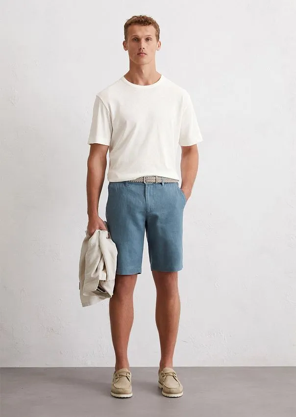 Абсолютный мастхэв летнего гардероба: легкие и универсальные льняные шорты RESO. Выполнены из воздушной пряжи, состоящей из чистого льна. Благодаря особой структуре волокон материал отлично пропускает воздух и обладает натуральным охлаждающим кожу эффектом. Модель прямого кроя дополнена частично эластичным поясом, французскими карманами спереди и прорезными карманами на пуговицах сзади. Благодаря специальной технологии промышленной стирки шорты приобрели аутентичный цвет и мягкую текстуру. Идеальный вариант для теплых месяцев.