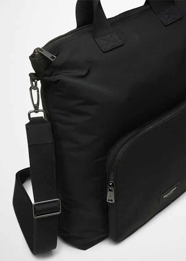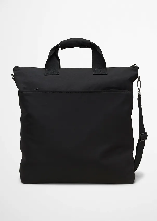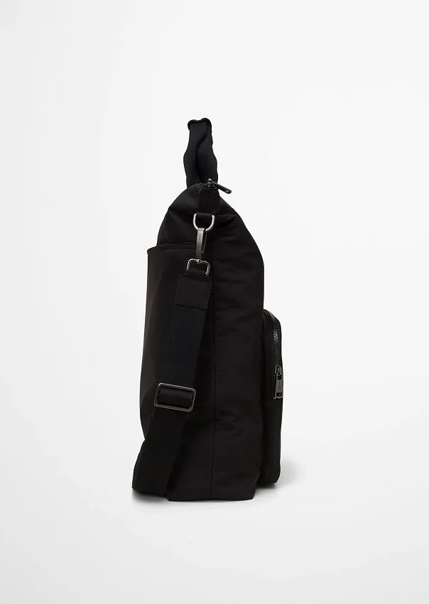 Практичная и экологичная: сумка прямоугольного формата вмещает все самое необходимое. Выполнена из переработанного полиамида с водоотталкивающими свойствами. Вместительное основное отделение с застежкой на практичную молнию дополнено просторным боковым карманом для более грамотной организации хранения. Снаружи расположены дополнительные отсек и карман на молнии. Съемный плечевой ремень регулируется по длине, а благодаря коротким ручкам сумку можно нести в руках. На лицевой стороне расположена нашивка с логотипом. Идеально подходящая для повседневной офисной жизни, отдыха или коротких поездок, эта модель сочетает в себе функциональность и неподвластный времени дизайн. Незаменимый аксессуар на все случаи жизни.