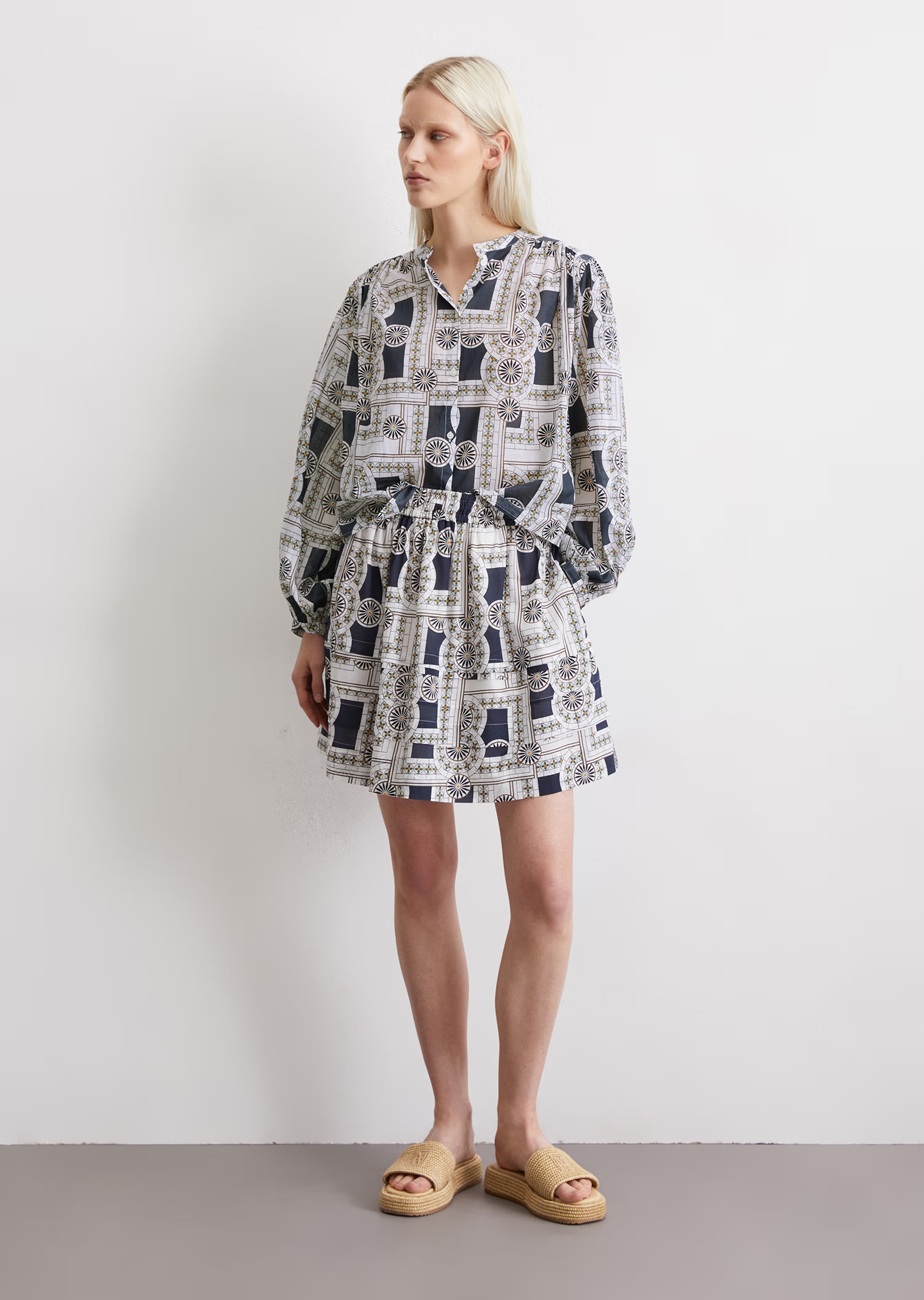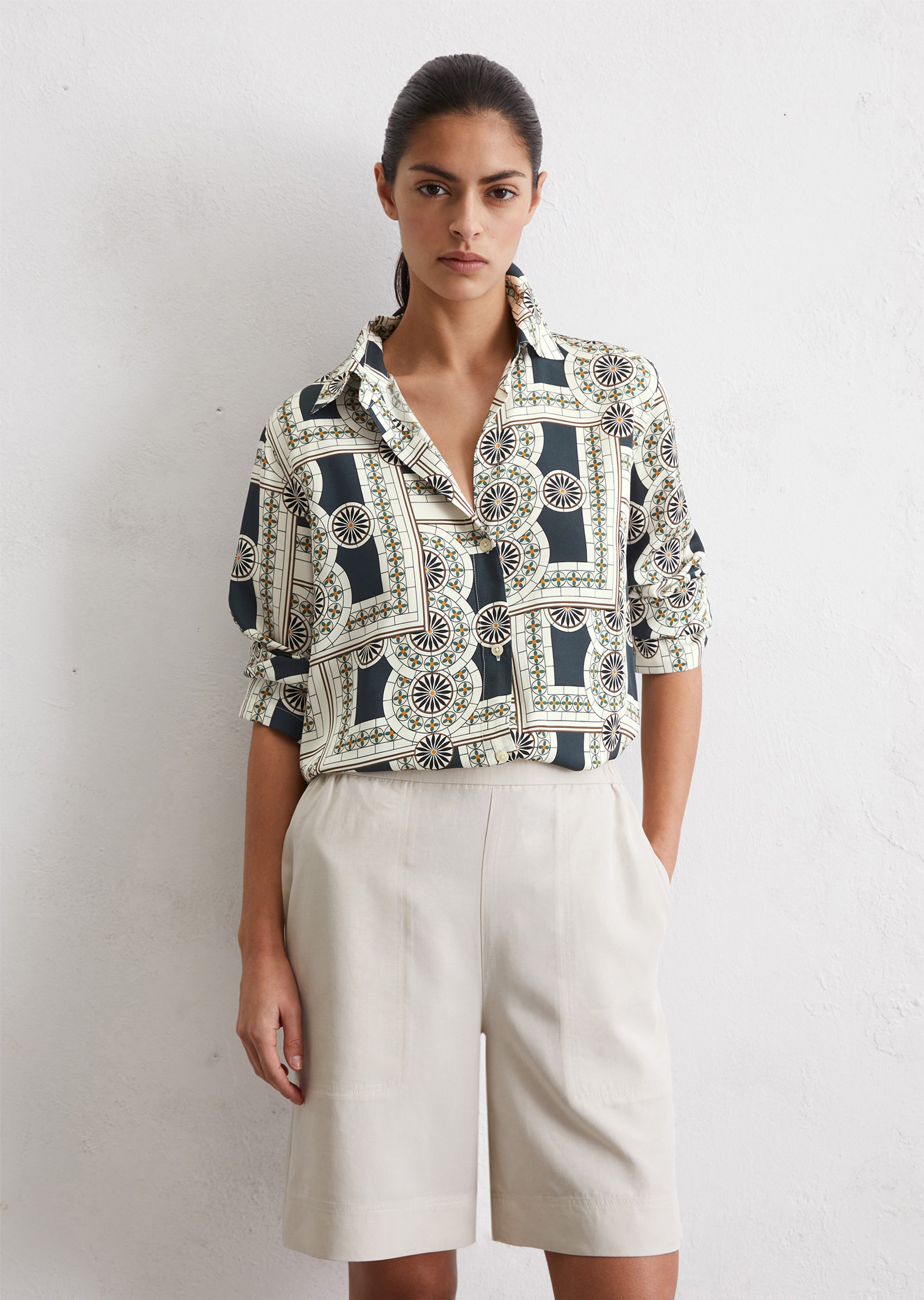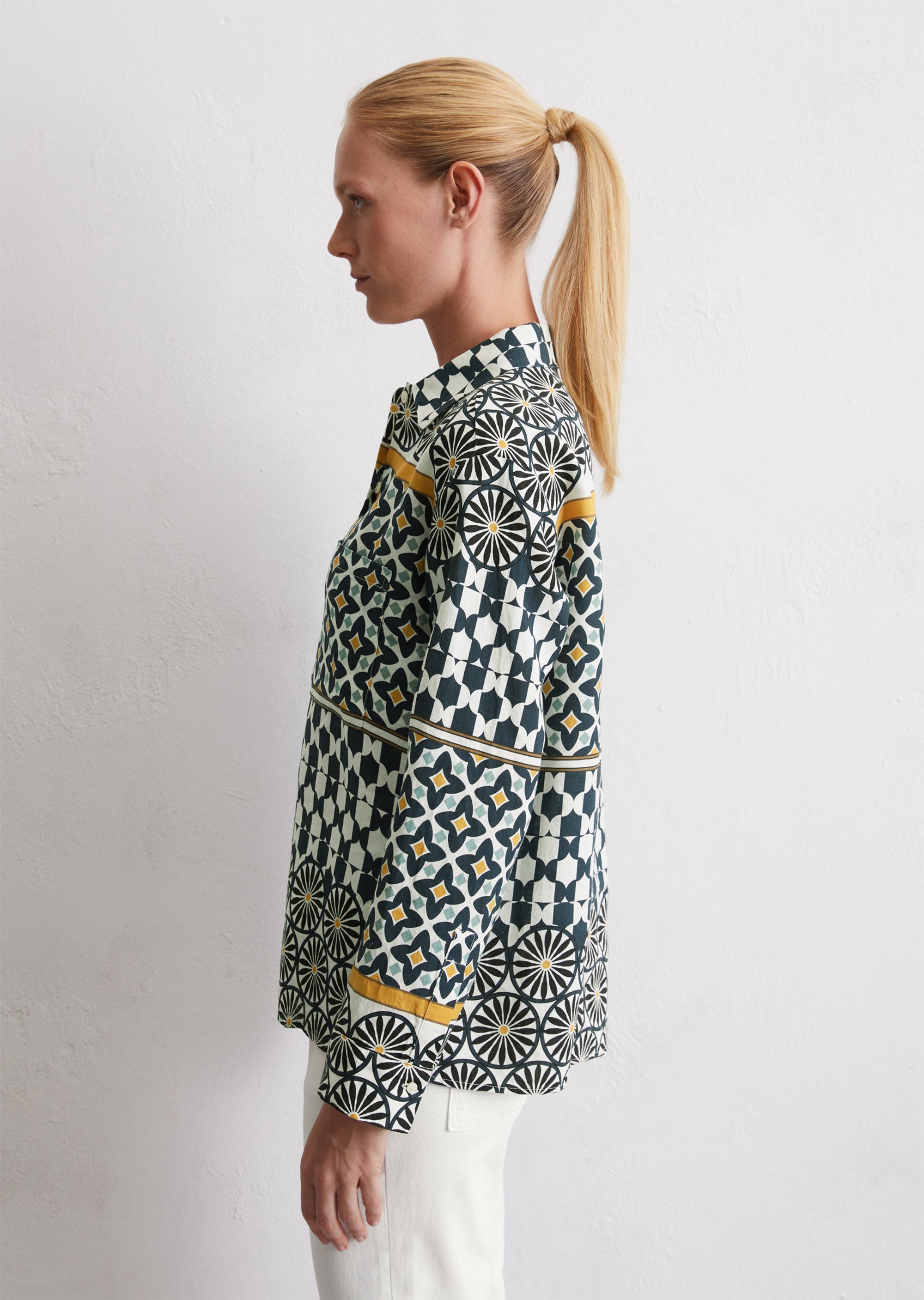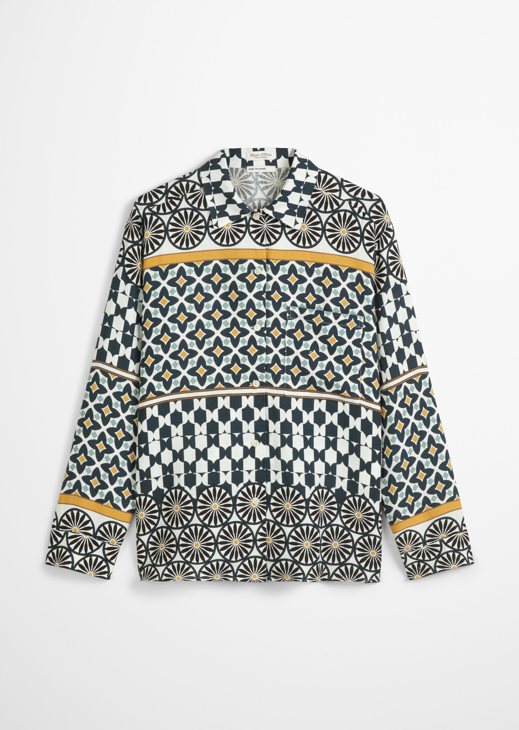 Принты для изделий Marc O’Polo разрабатываются, отрисовываются и переносятся на ткань в собственном дизайн-бюро. Отдельное новшество и гордость – принты-панно на льне – очень сложный технологический процесс, который выполняется вручную