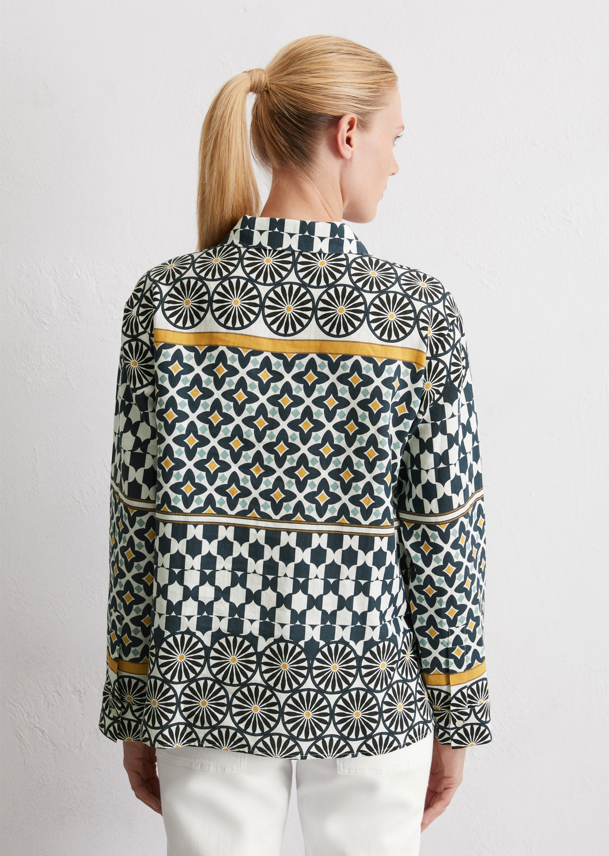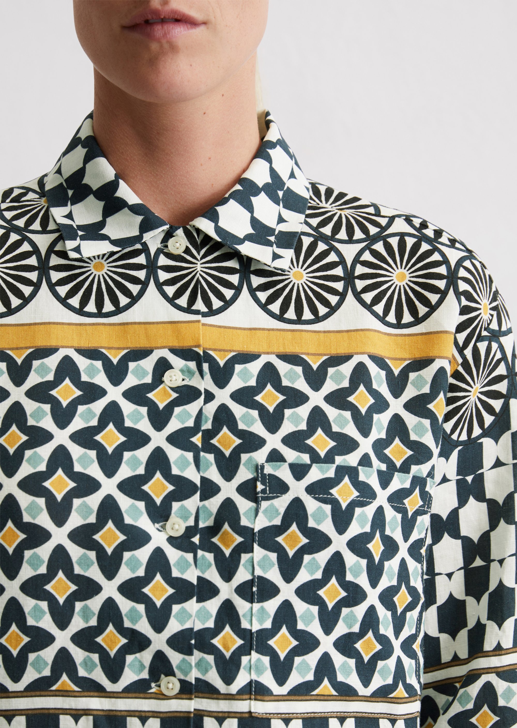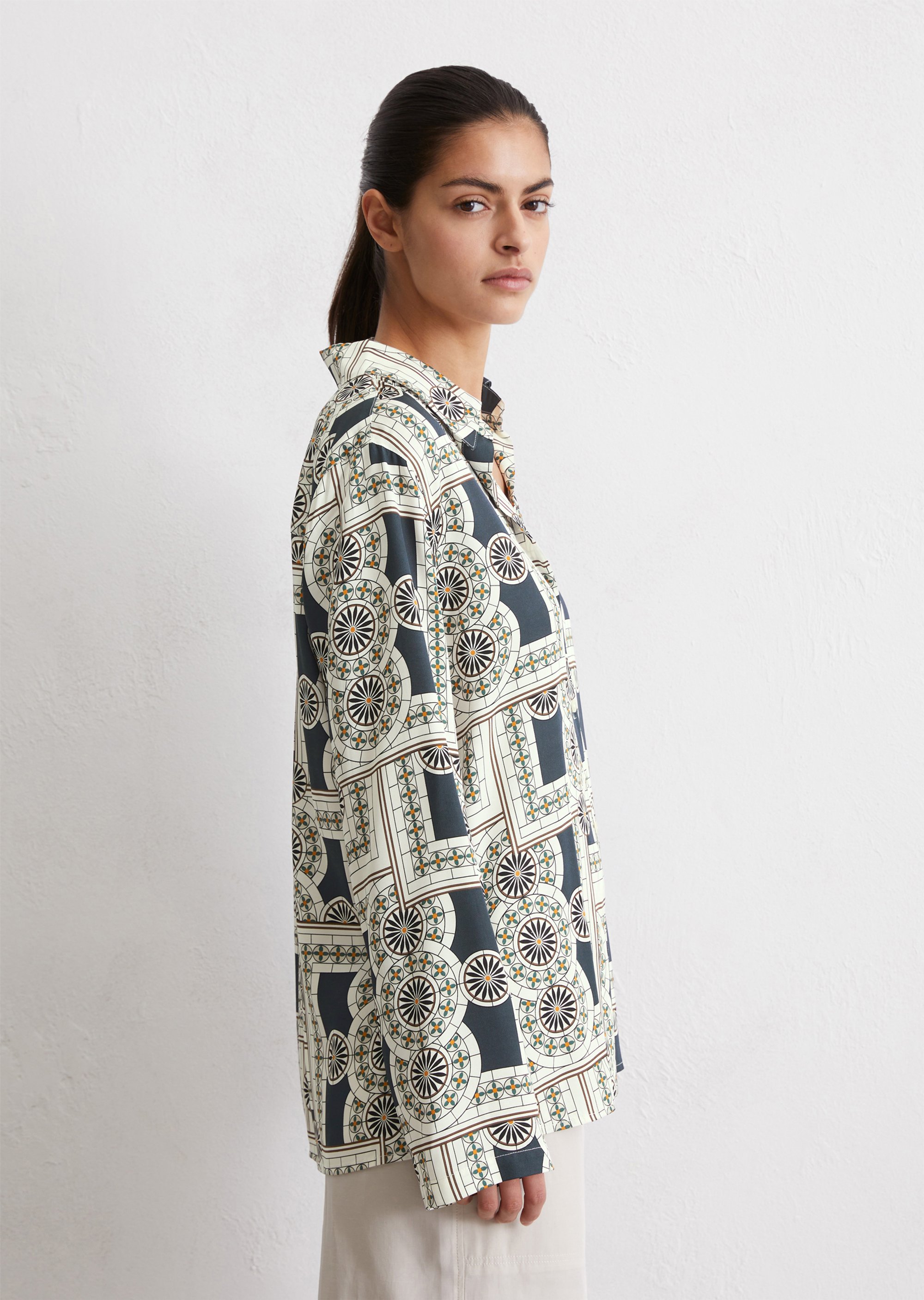 Принты для изделий Marc O’Polo разрабатываются, отрисовываются и переносятся на ткань в собственном дизайн-бюро. Отдельное новшество и гордость – принты-панно на льне – очень сложный технологический процесс, который выполняется вручную