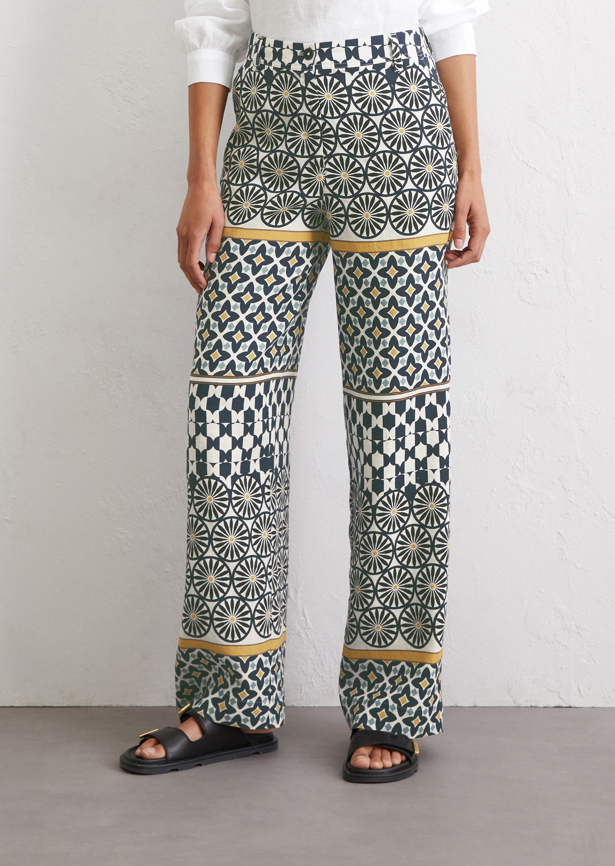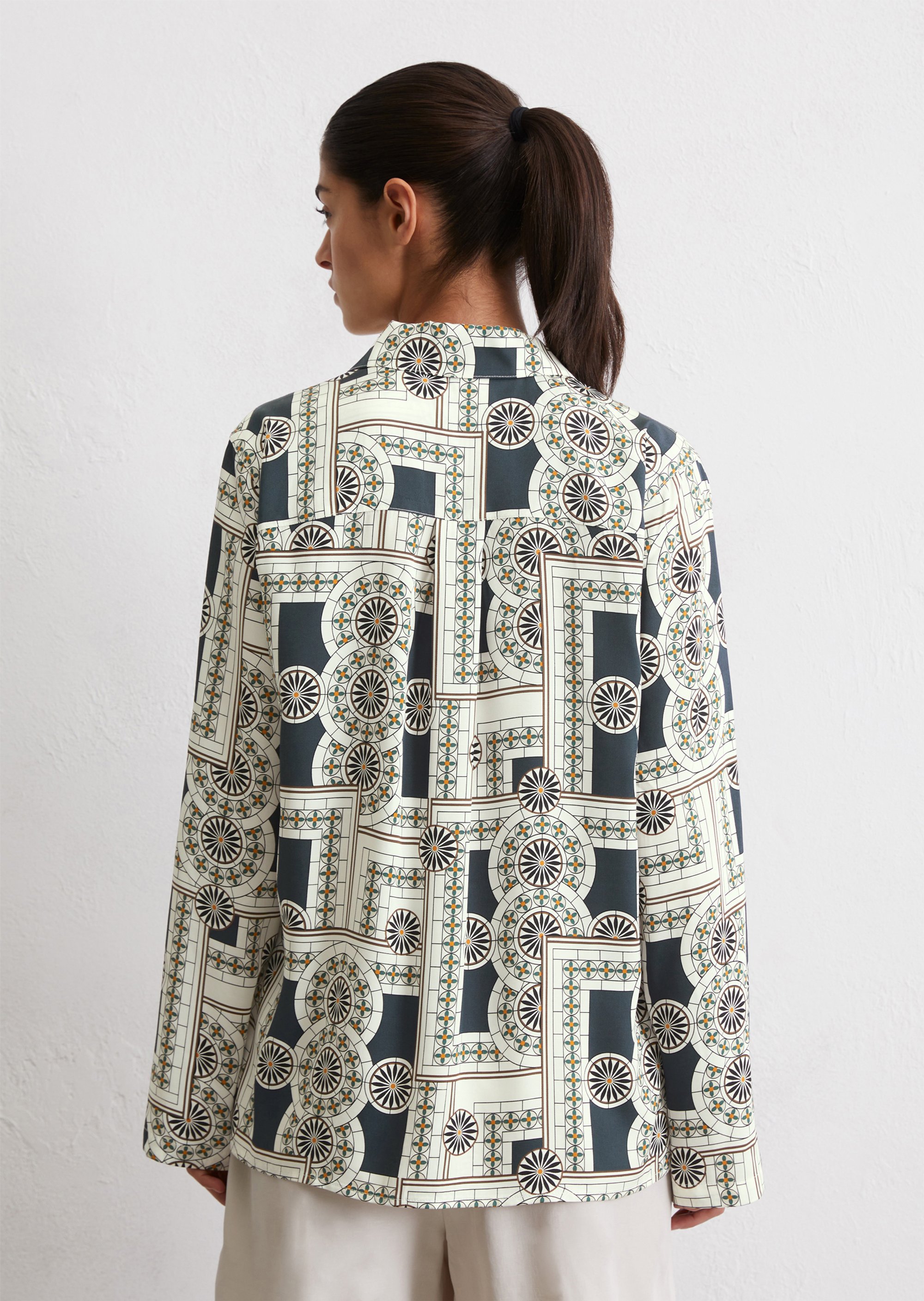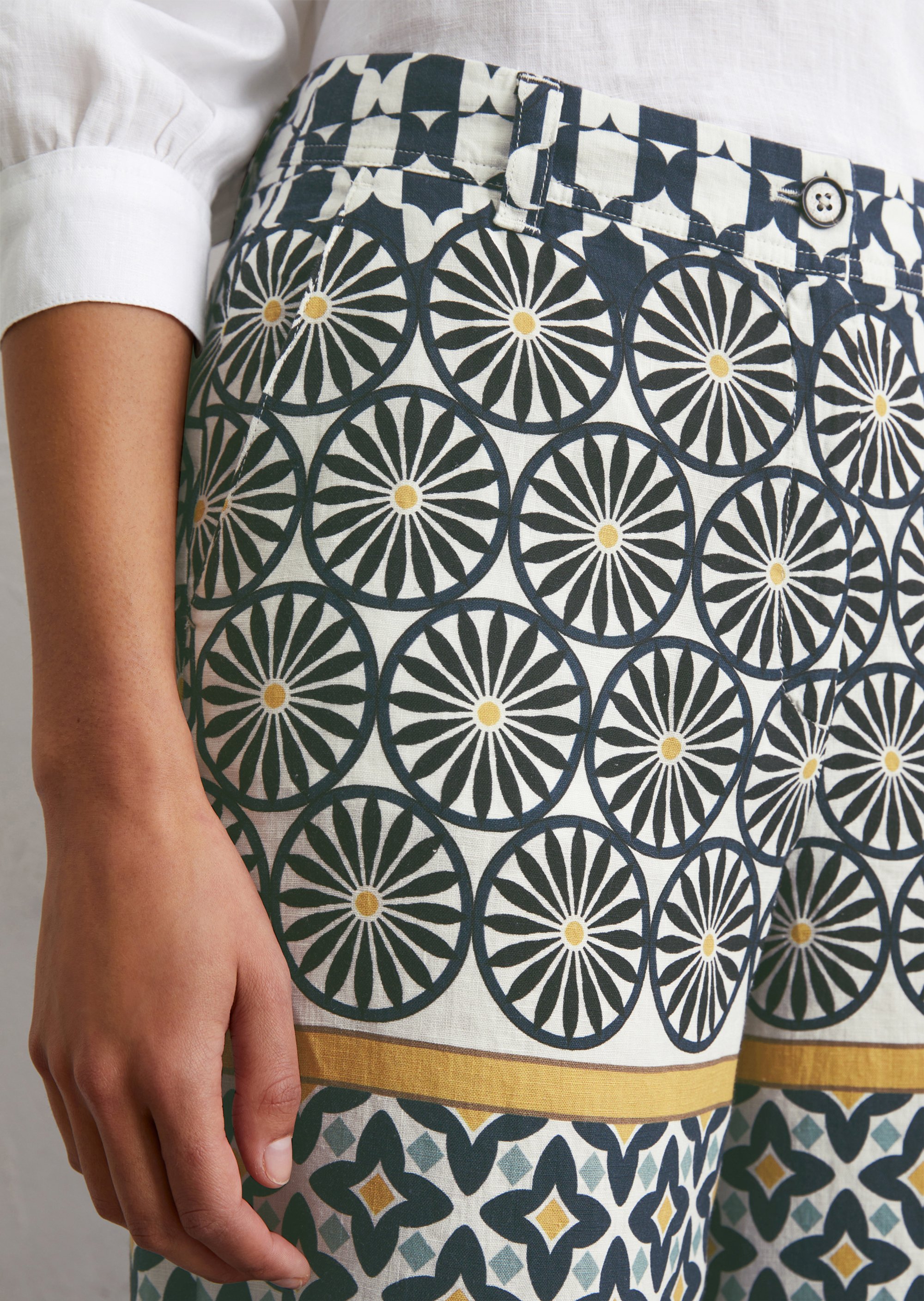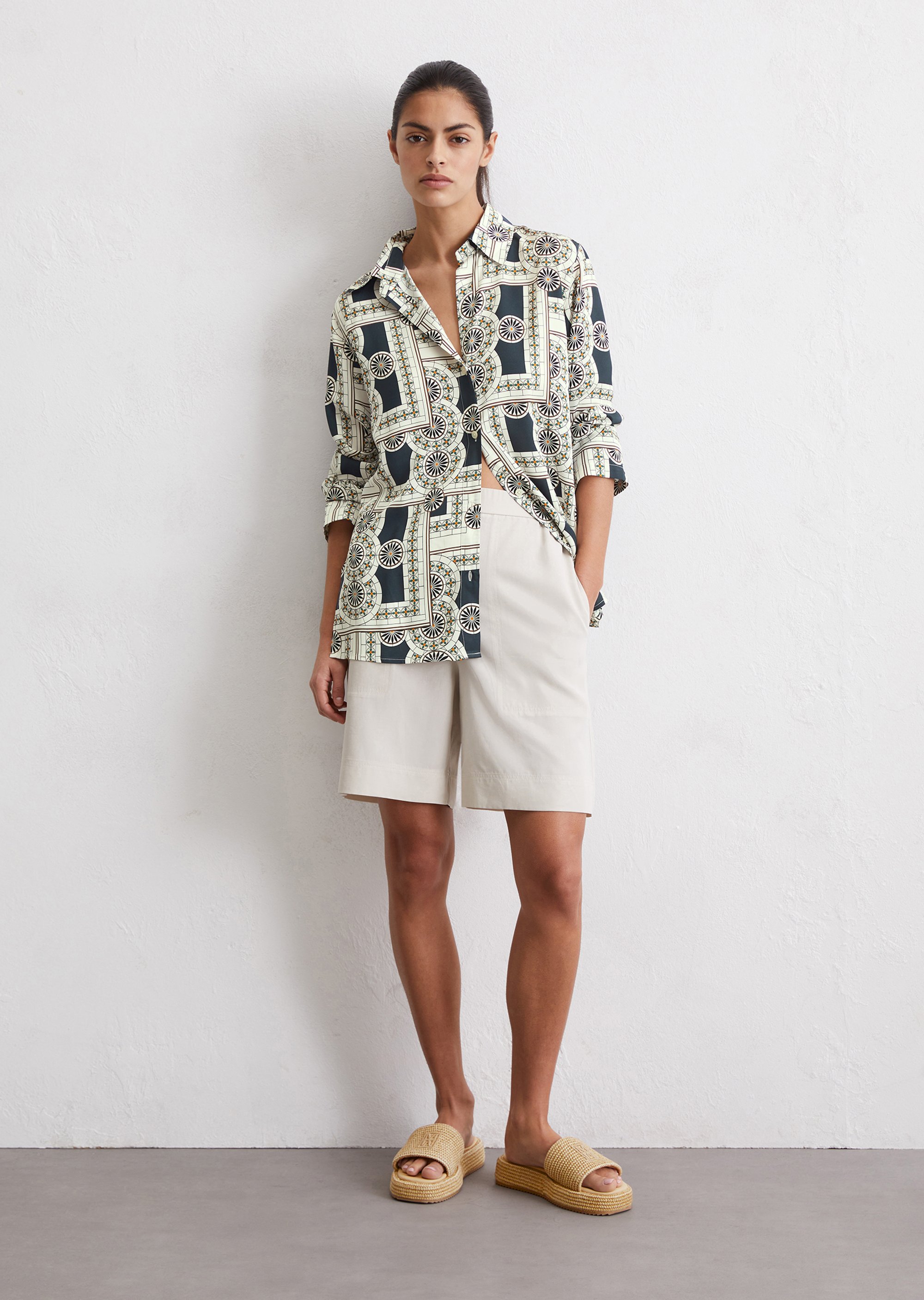 Принты для изделий Marc O’Polo разрабатываются, отрисовываются и переносятся на ткань в собственном дизайн-бюро. Отдельное новшество и гордость – принты-панно на льне – очень сложный технологический процесс, который выполняется вручную