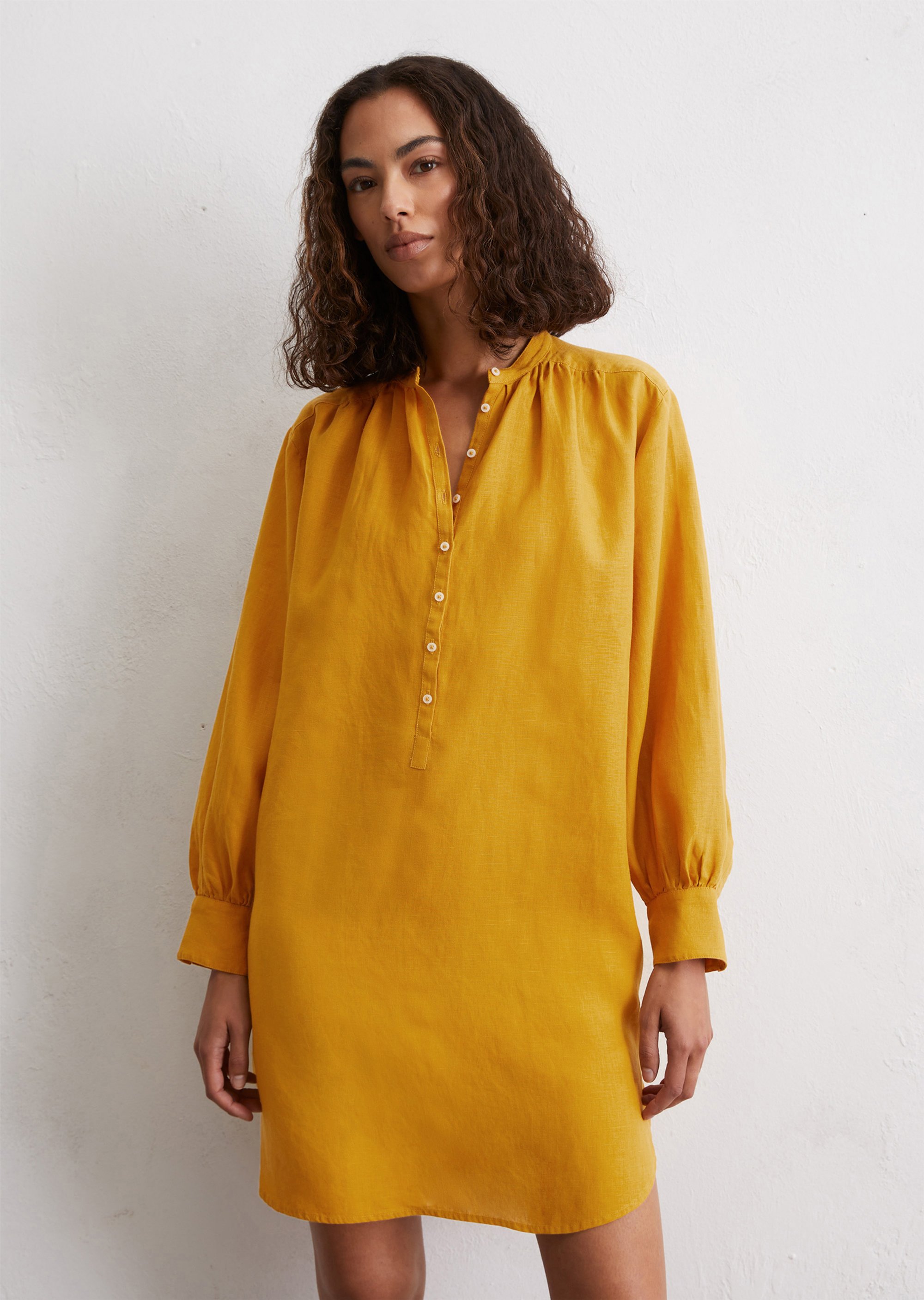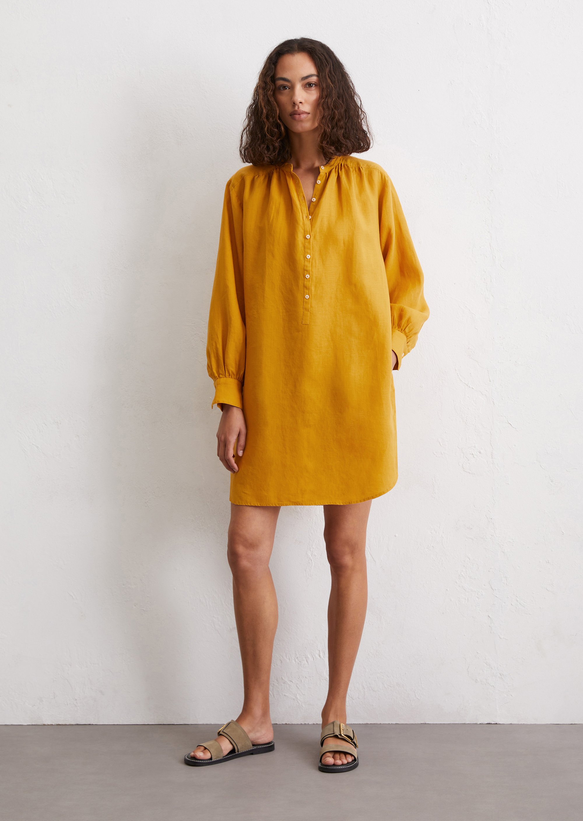Оттенки экрю, приглушенного синего и яркого горчичного отражают природную естественность коллекции
