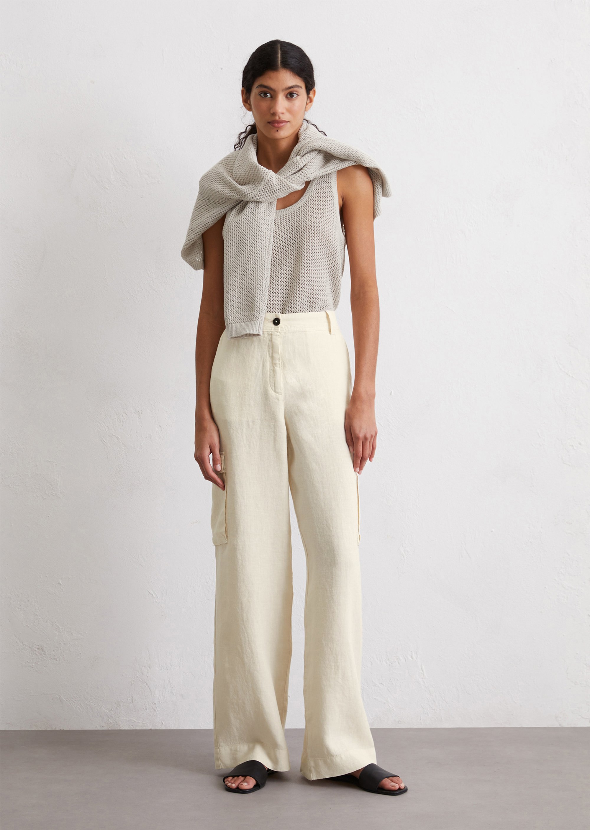 Модели лаконичных силуэтов, представленные в коллекции, выполнены из благородных материалов: чистого льна с воздушной текстурой, органического хлопка и вискозы