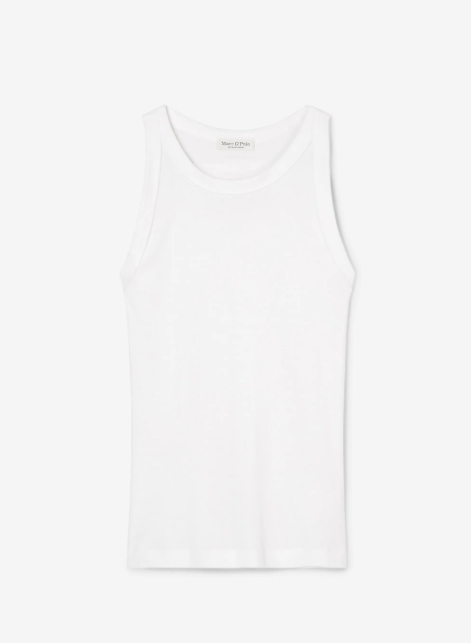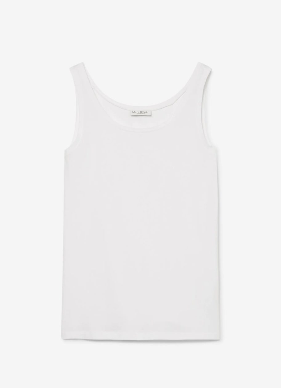 Из плотного хлопка, без узоров и украшений. Весной вы сможете надеть майку под джинсовую куртку, рубашку или пиджак, а летом носить самостоятельно с брюками, шортами или джинсами.