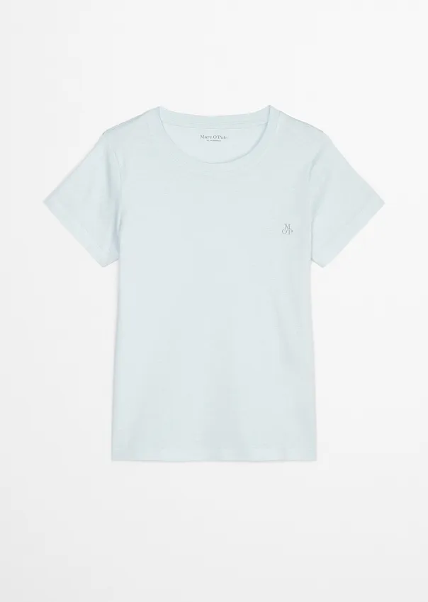Базовая футболка облегающего силуэта обеспечит максимальный комфорт в течение всего дня. Выполнена из мягкого однослойного джерси, состоящего чистого органического хлопка. Лаконичная модель с круглым вырезом горловины, короткими рукавами и прямой линией подола. На груди расположен неброский принт логотипа. Идеально подходит для отдыха, сна или уютных вечеров дома.