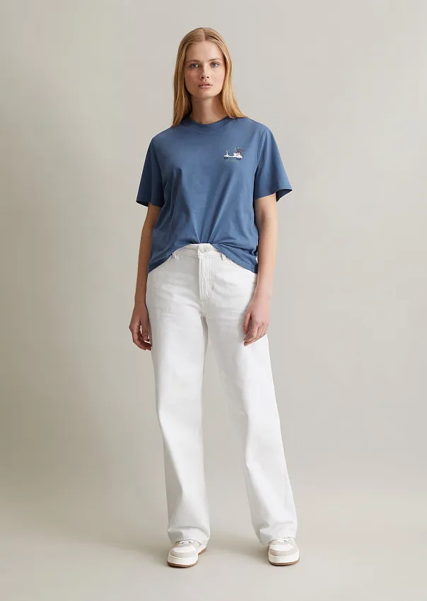 Футболка свободного кроя гармонично дополнит расслабленный повседневный образ. Выполнена из мягкого однослойного джерси, состоящего из чистого органического хлопка, сертифицированного GOTS. Детали: круглый вырез горловины в рубчик, короткие рукава и прямой подол. Футболка дополнена современным принтом на груди. Благодаря специальной технологии энзимной стирки изделие приобрело аутентичный цвет и мягкую текстуру. Данная модель разработана в соответствии с критериями цикличного дизайна: выполнена из безопасных и возобновляемых и/или переработанных материалов и подлежит переработке по окончании срока службы.