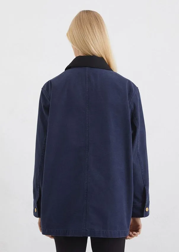 Стильная куртка в рабочем стиле, выполненная из прочного канваса, отлично дополнит образ в стиле кэжуал. Изготовлена из высококачественного органического хлопка, сертифицированного OCS. Слегка удлиненная модель расслабленного кроя со спущенной линией плеча дополнена четырьмя накладными карманами и застежкой на пуговицы золотистого цвета по всей длине. Съемный воротник выполнен в контрастном цвете. Идеальный вариант на каждый день.