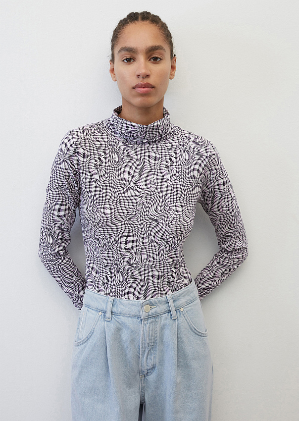 Изготовленный из однослойного джерси: классический лонгслив с вырезом "лодочка", небольшим флокированным логотипом контрастного цвета на груди и прямой линией подола. Вневременная модель подаётся различной стилизации, что делает её ключевым элементом гардероба.