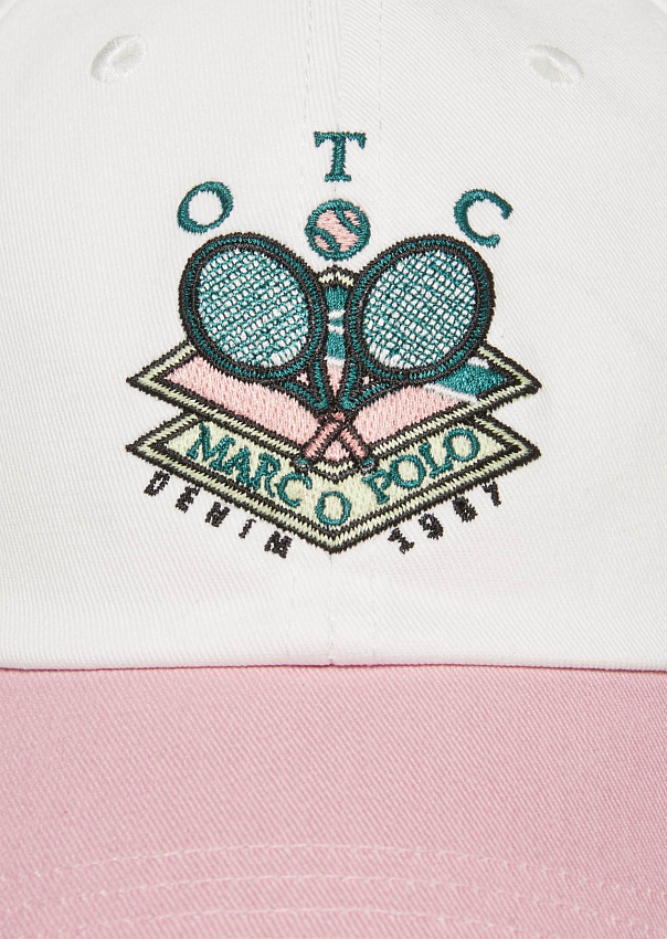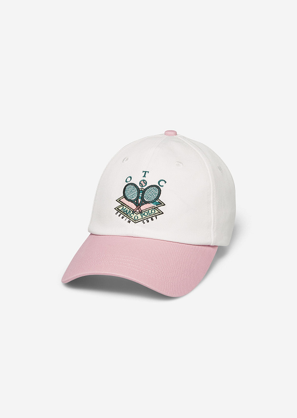 Классная шестипанельная бейсболка в теннисном стиле изготовлена из органического твила и украшена вышивкой контрастного цвета. Изогнутый козырек выполнен в контрастном цвете. Модель регулируется сзади с помощью ремешка на липучке. Детали: вентиляционные отверстия, кнопка сверху.