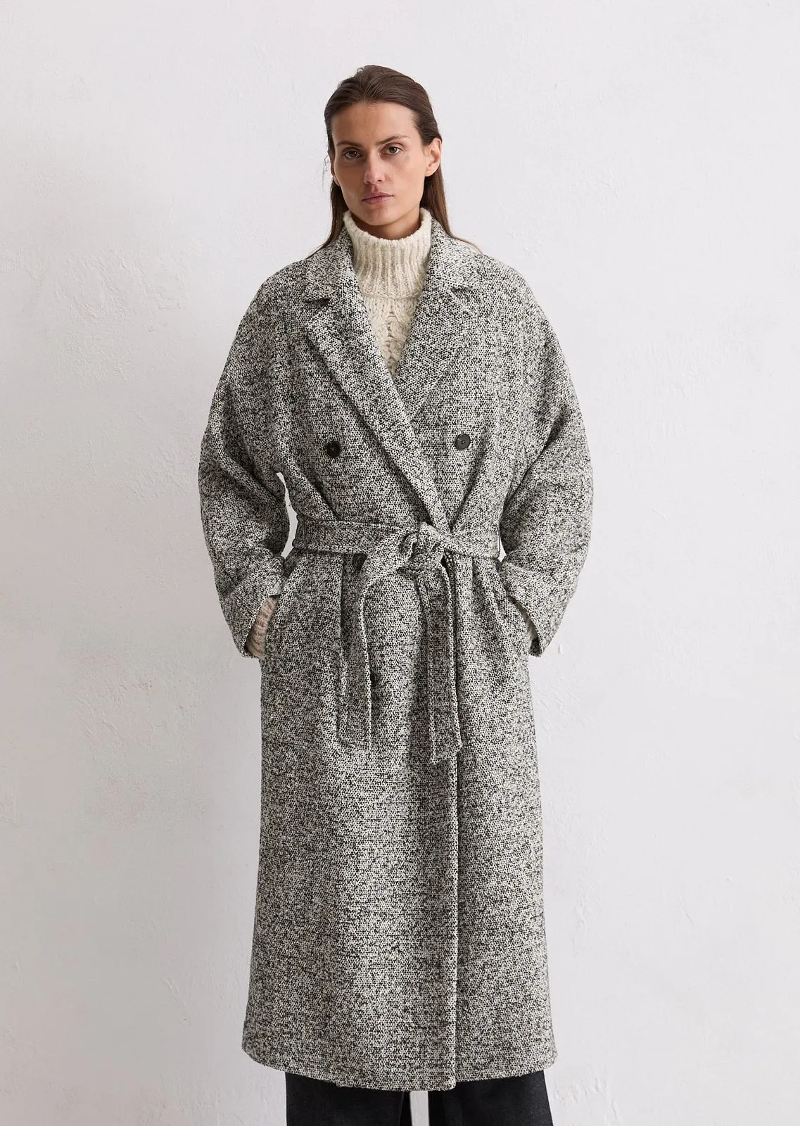 Широкие брюки в костюмном стиле – незаменимый предмет одежды для создания стильного и эффектного образа. Выполнены из высококачественного твида, состоящего из благородной смесовой шерсти. Модель высокой посадки на талии выстраивает идеальный силуэт и визуально удлиняет ноги. Изделие дополнено классическим поясом со шлевками для ремня и скрытой застежкой на крючок. Детали: стрелки, прорезные боковые карманы спереди и прорезные карманы сзади. Непринужденный офисный костюм или элегантный вечерний наряд – брюки дополнят любой модный образ.
