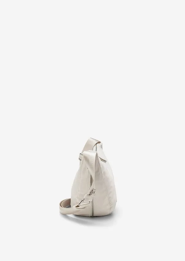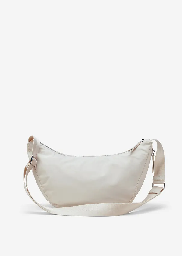 Практичная и компактная: легкая сумка отлично дополнит повседневный аутфит. Выполнена из водоотталкивающего материала, состоящего из переработанного полиамида, и дополнена подкладкой из органического хлопка. Основное отделение закрывается на надежную металлическую молнию, внутри расположен боковой дополнительный карман на молнии. Широкий плечевой ремень регулируется по длине. На лицевой стороне расположен металлический логотип. Идеальный спутник на каждый день.