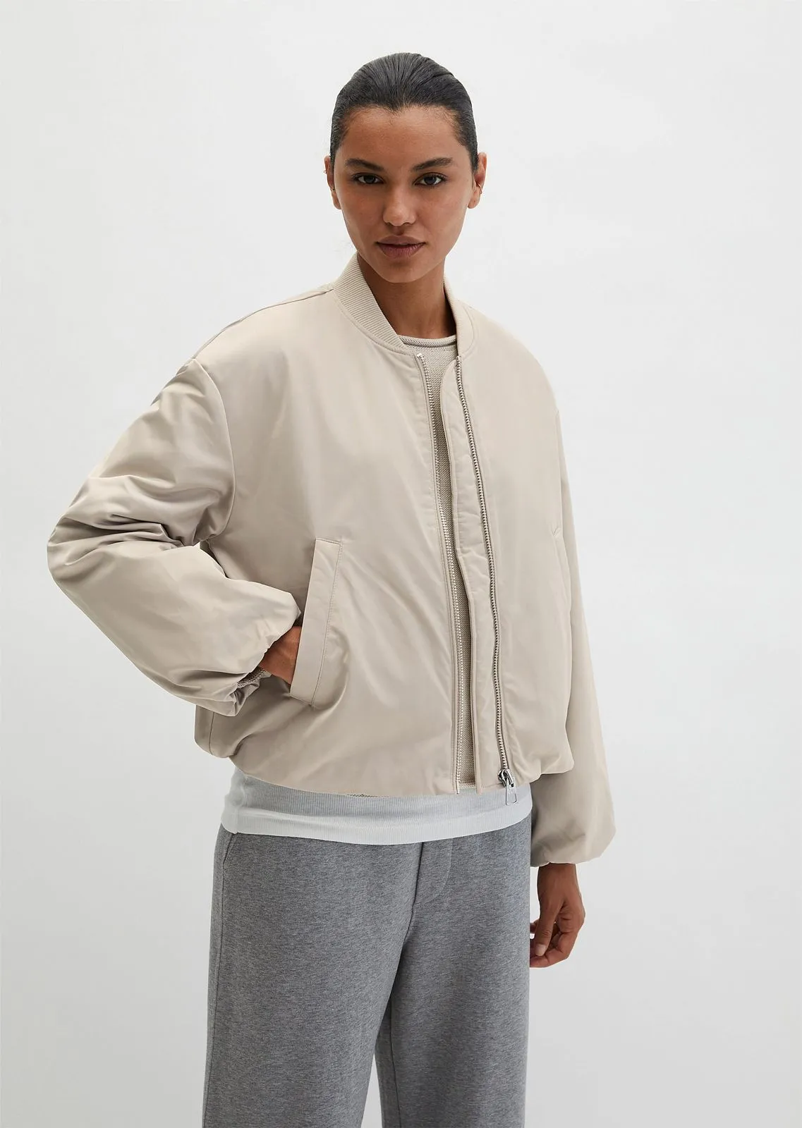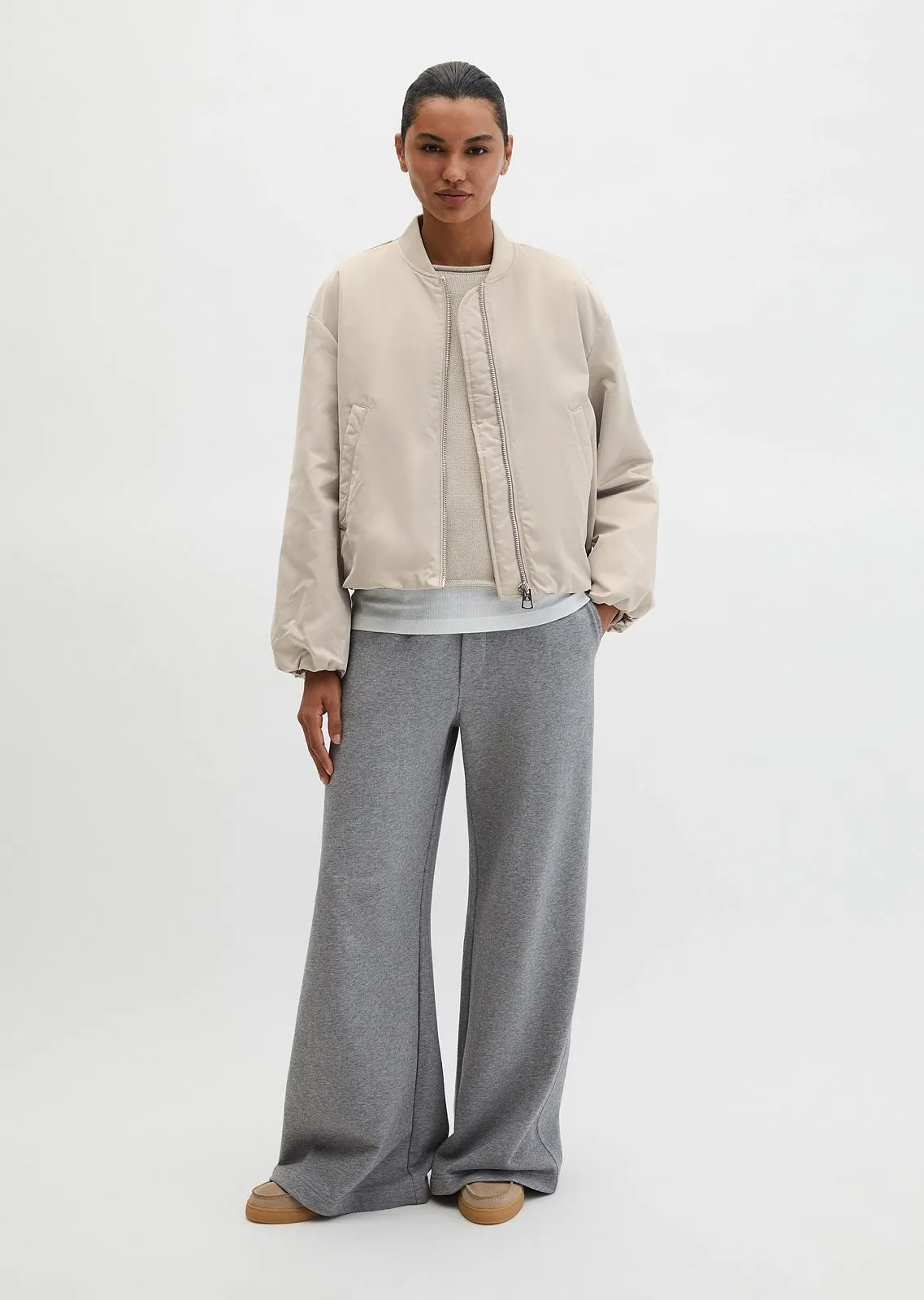 Повседневные спортивные брюки свободного кроя с расклешенными штанинами. Модель выполнена из чистого хлопка с применением пигментного окрашивания после пошива. Брюки оснащены комфортным эластичным поясом и практичными боковыми карманами. Особая деталь: трикотаж изготовлен частично из переработанного хлопка и частично — из сертифицированного органического хлопка. Дополните образ свитшотом или худи в тон, чтобы создать стильный тотал-лук.